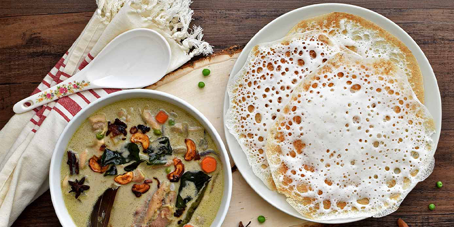 2. Appam and Stew – Light, Creamy, and Comforting